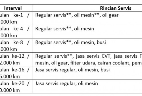 Jika mengacu pada buku petunjuk servis dari pabrikan berdasarakan Kartu Servis Gratis (KSG) dan Kartu Servis Berkala (KSB), maka estimasi biaya perawatan servis motor tersebut selama tiga tahun pemakaiaan tidak jauh berbeda dengan NMAX.