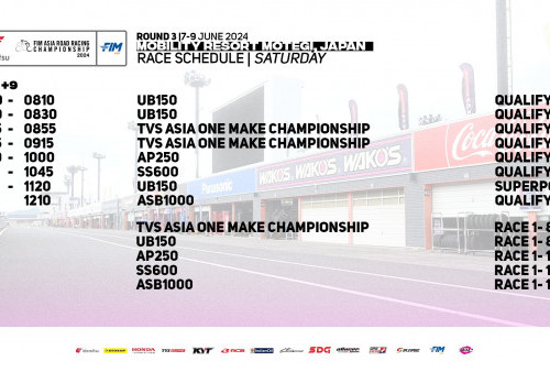 Di hari Sabtu (8/6), diawali dari sesi kualifikasi kelas UB150 di pukul 08.00 waktu setempat. Kemudian di siang hari, akan ada Race-1 dari masing-masing kelas.