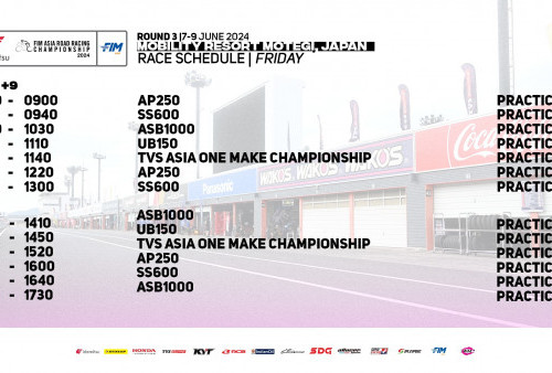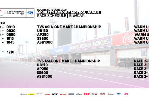 Nantinya ajang balap tersebut bakal berlangsung hingga Minggu (9/6) dengan total lima kelas yang dilombakan. Balapan tersebut akan ada kelas TVS Asia One Make Championship.