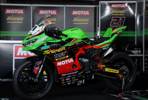Nah, spesialnya, sekarang Kawasaki jadi satu-satunya tim yang turun pakai motor 4 silinder di kelas AP250.