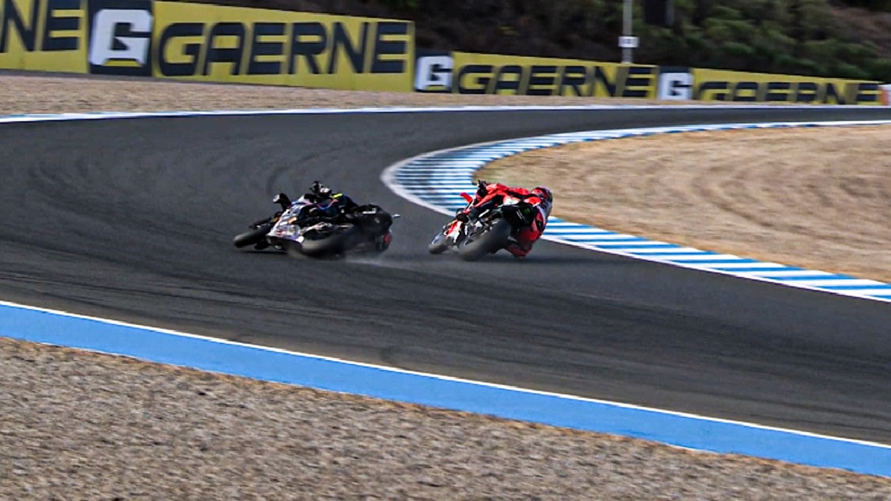 JAKARTA, MOTOREXPERTZ.COM -- Drama besar terjadi di Tissot Superpole Race saat Toprak Razgatlioglu (ROKiT BMW Motorrad WorldSBK Team) dan Nicolo Bulega (Aruba.it Racing - Ducati) bertabrakan di Tikungan 5 Circuito de Jerez - Angel Nieto.