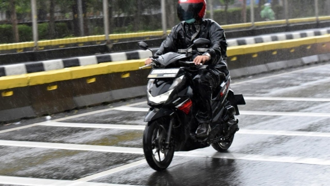 JAKARTA, MOTOREXPERTZ.COM -- Hujan lebat yang belakangan ini mengguyur sebagian wilayah Jakarta - Tangerang membuat pengendara sepeda motor harus lebih waspada. Cuaca buruk meningkatkan risiko di jalan, sehingga penting untuk selalu mengutamakan keselamatan dengan tetap #Cari_aman.