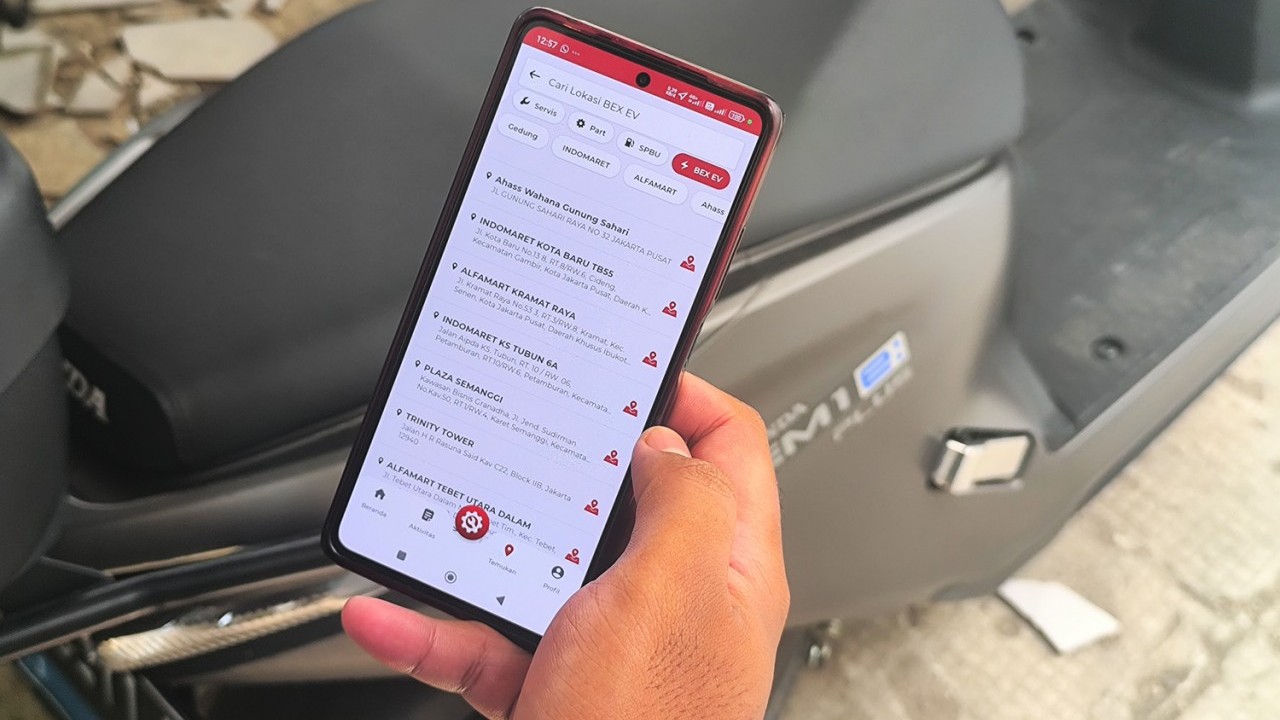 Salah satunya adalah fitur 'Temukan BEX EV' yang memungkinkan pemilik motor listrik Honda seperti EM1 e: dan CUV e: untuk dengan cepat menemukan lokasi penukaran baterai (swab).