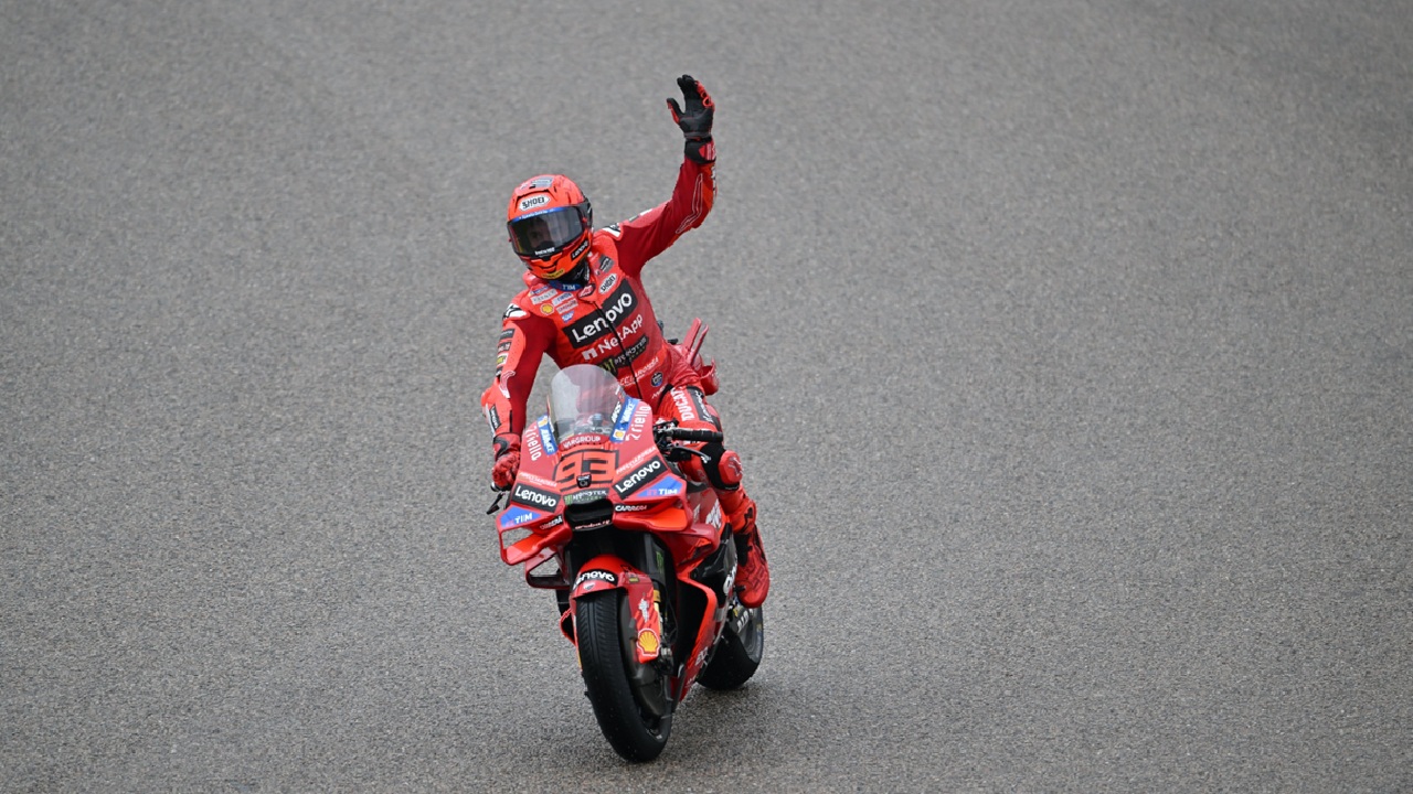 Marquez sebenarnya sempat start dari pole dan langsung melakukan holeshot di Tikungan 1. Tapi sayang, dia melebar dan langsung disalip empat pembalap sekaligus—Bezzecchi, Morbidelli, Quartararo, dan Di Giannantonio.