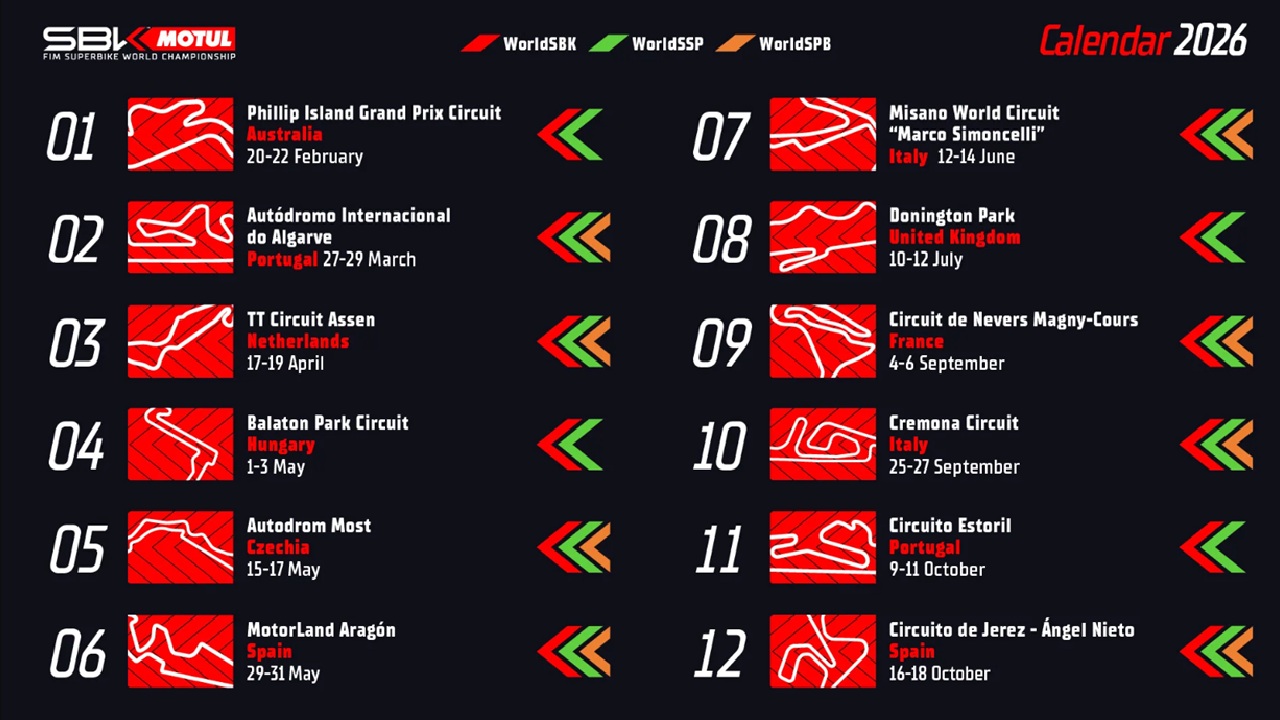 JAKARTA, MOTOREXPERTZ.COM -- Dorna WorldSBK Organization (DWO) akhirnya ngumumin juga kalender sementara buat Kejuaraan Dunia MOTUL FIM Superbike 2026.