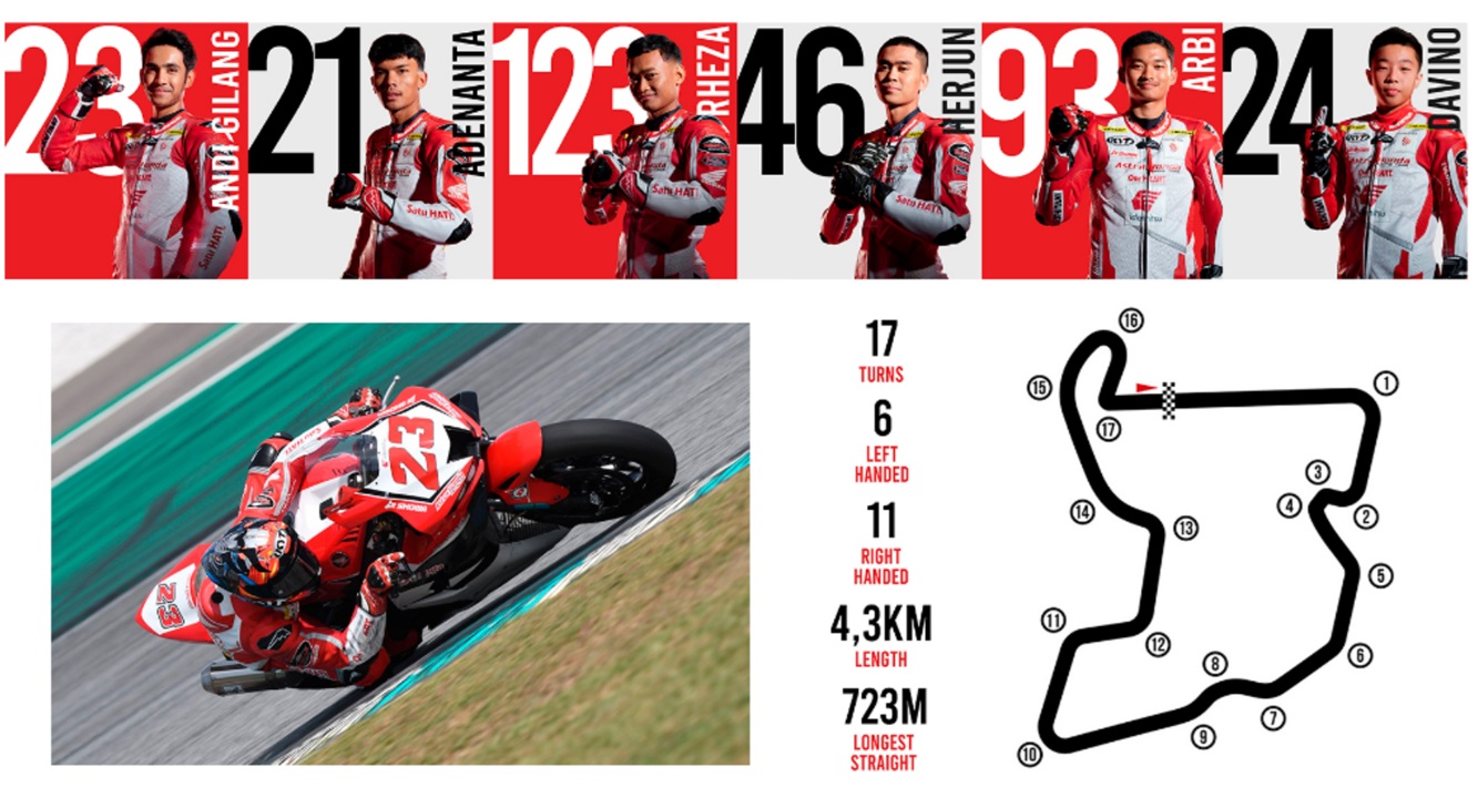 Tim balap Honda ini turun dengan kekuatan penuh setelah Andi Farid Izdihar pulih dari cedera yang membuatnya absen di Motegi.