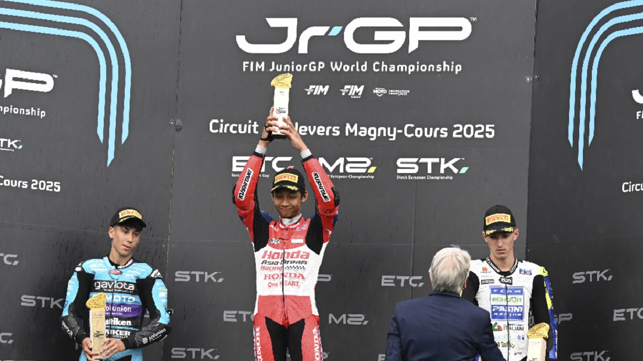 Pebalap muda Indonesia ini menjadi yang pertama meraih kemenangan di ETC sekaligus naik podium di dua ajang internasional berbeda.