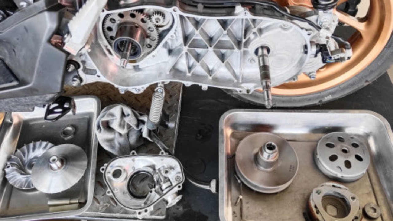“Kalau ganti bearing as roda belakang di motor matic itu bongkar semua, mulai dari CVT, knalpot, sampai roda dicopot,” ujar salah satu mekanik bengkel spesialis.