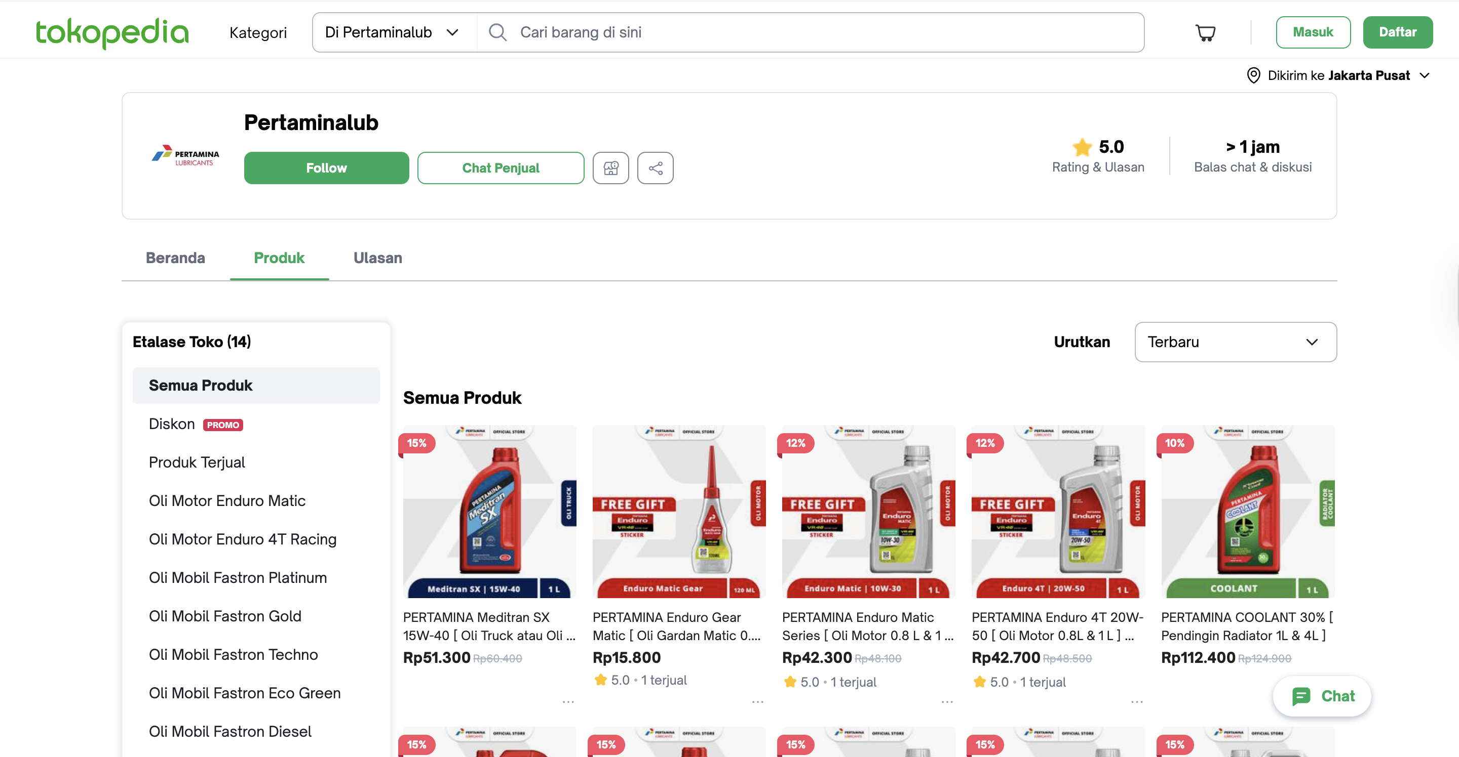 Official store Pertamina Lubricants hadir dengan nama “Pertaminalub” di Tokopedia dan TikTok Shop, serta “Pertamina Lubricants Official Store” di Shopee.
