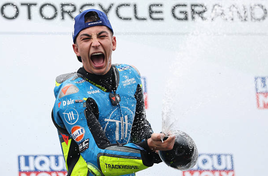 Pebalap Trackhouse MotoGP Team itu finish di posisi terdepan, diikuti Fabio Di Gianannatonio (Pertamina VR46 Racing Team) dan Marco Bezzechi (Aprilia Racing) melengkapi podium.