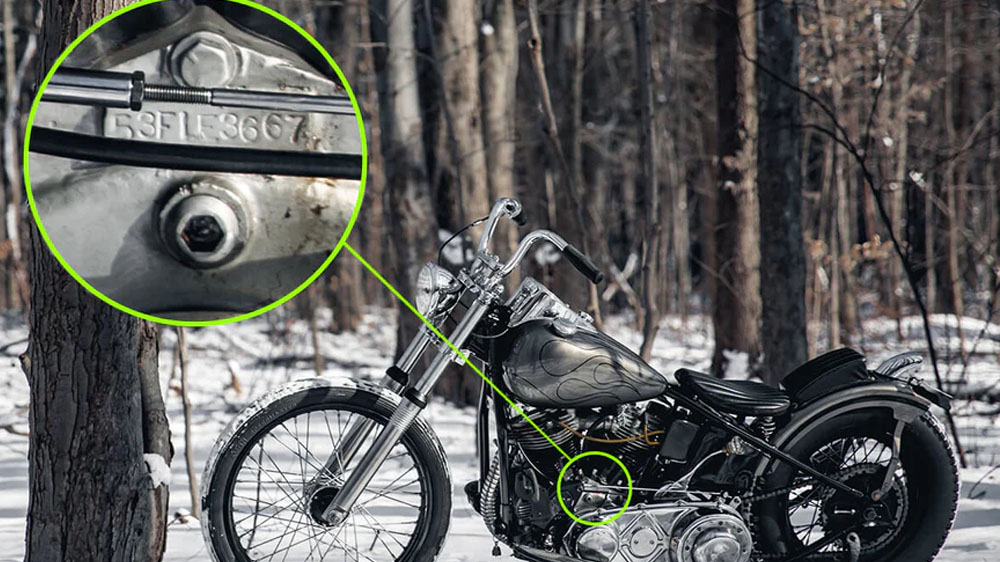 Kode VIN terdiri dari 17 digit kombinasi huruf dan angka, biasanya terletak di rangka depan, dek bawah, atau leher stang.