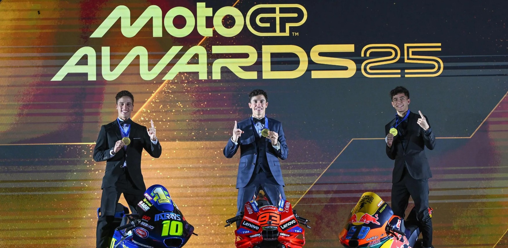Para Juara Dunia musim ini menerima medali yang layak mereka terima, sementara Marc Marquez (Ducati Lenovo Team) naik ke panggung untuk merayakan comeback terhebat dalam sejarah olahraga yang dikenal sebagai Comeback of The Comeback.