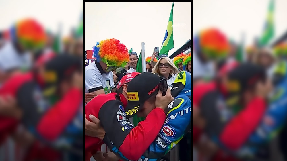 MOTOREXPERTZ.COM -- Beginilah terbentuknya pelukan emas dari dua juara dunia antara Marc Marquez dan Diogo Moreira.