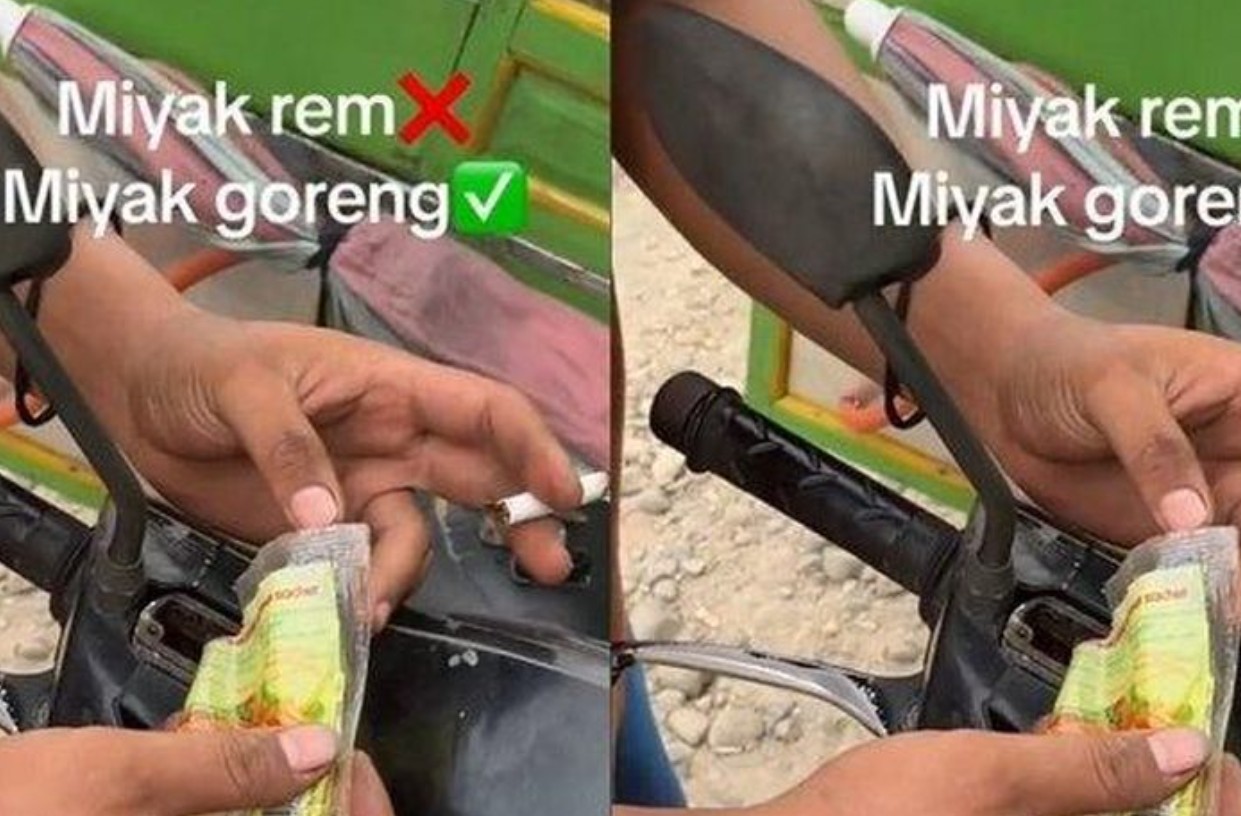 MOTOREXPERTZ.COM -- Beredar video di media sosial yang memperlihatkan seorang tukang bakso mengganti minyak rem motornya dengan minyak goreng.