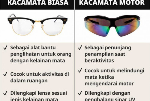 Meskipun keduanya sama-sama berfungsi sebagai alat bantu penglihatan, namun terdapat perbedaan yang cukup signifikan antara kacamata biasa dengan kacamata motor.