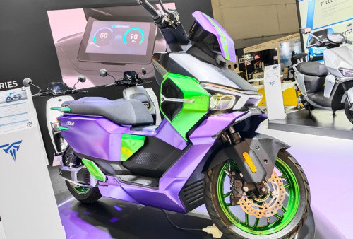 Selanjutnya ada motor listrik PAI TS3 yang menyolok lewat kombinasi kelir ungu dan hijau khas robot Evangelion.