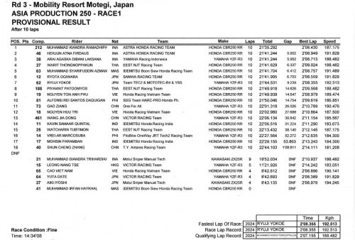 Pembalap Indonesia Sapu Bersih di Race-1 AP250 Motegi