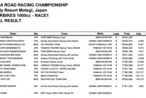 Hasil Lengkap Race 1 ASB1000 di ARRC Motegi