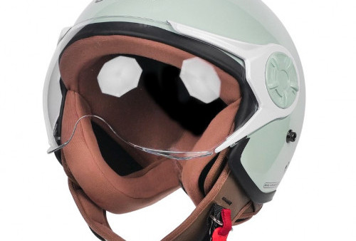 Helm ini punya tampilan girly dengan nuansa retro, cocok buat pengendara Vespa matik.