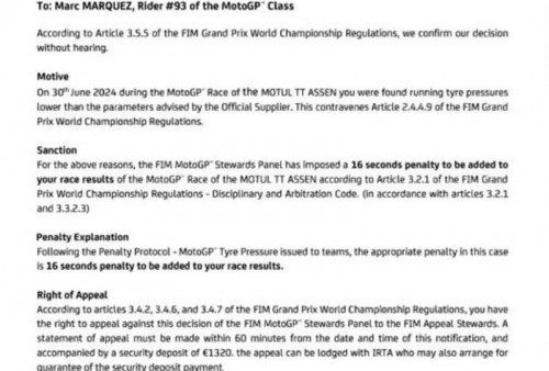 Proses banding ini akan melibatkan pengkajian ulang atas bukti-bukti yang ada serta argumen yang disampaikan oleh pihak Marquez dan timnya.