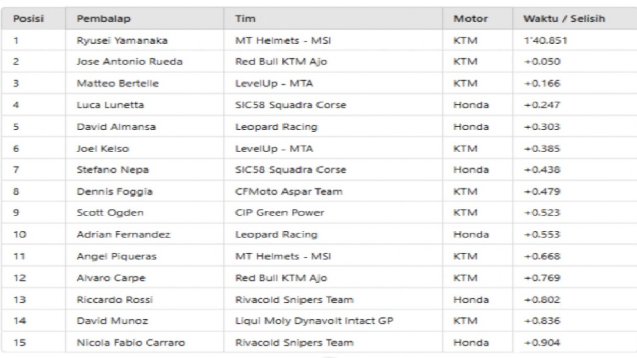 Tepat di belakangnya, ada Jose Antonio Rueda dari Red Bull KTM Ajo yang harus puas di posisi kedua.