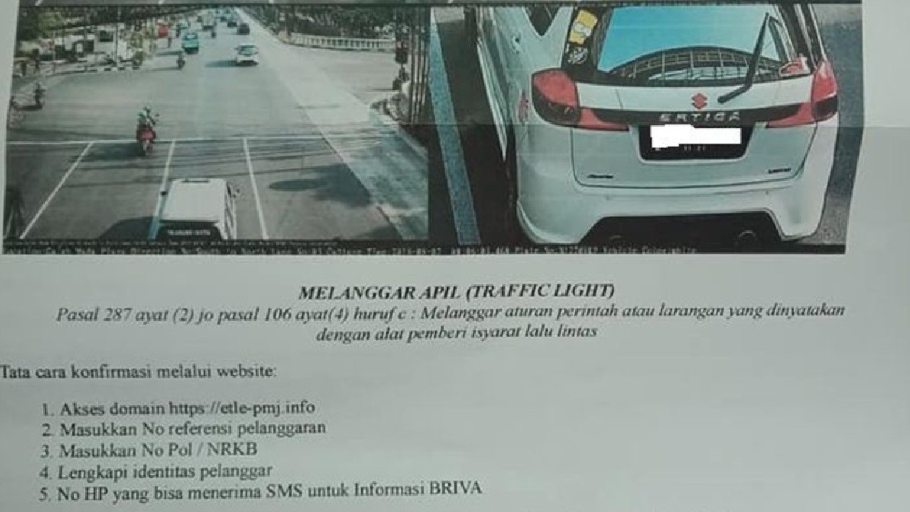 Yang jadi dasar penilangan adalah pelat nomor kendaraan, alias TNKB. Begitu kamera mendeteksi pelanggaran, petugas bakal langsung kirim surat konfirmasi lewat WhatsApp. Kamu pun harus segera konfirmasi dalam waktu yang udah ditentukan.