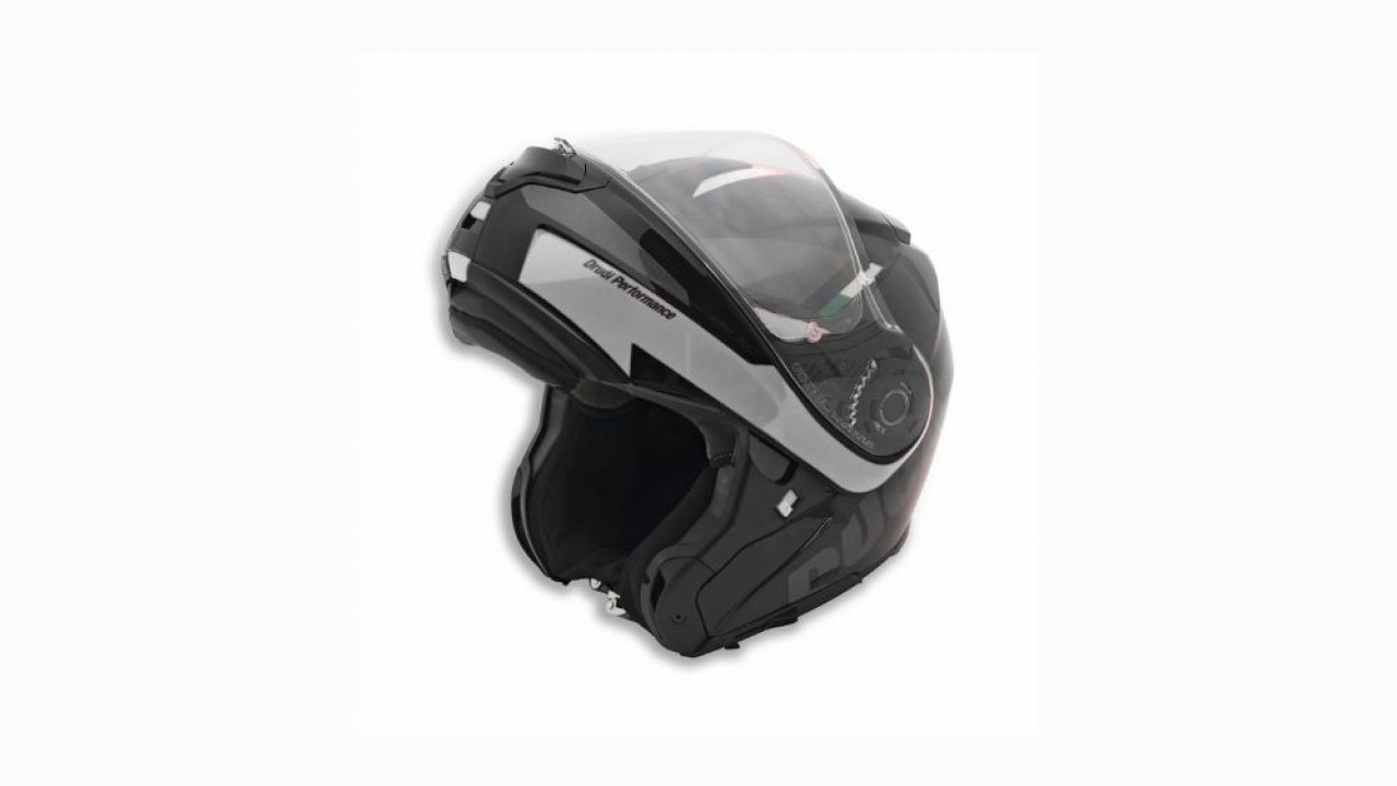 Helm modular atau flip-up menggabungkan fitur full face dan half face dengan bagian depan yang dapat diangkat.