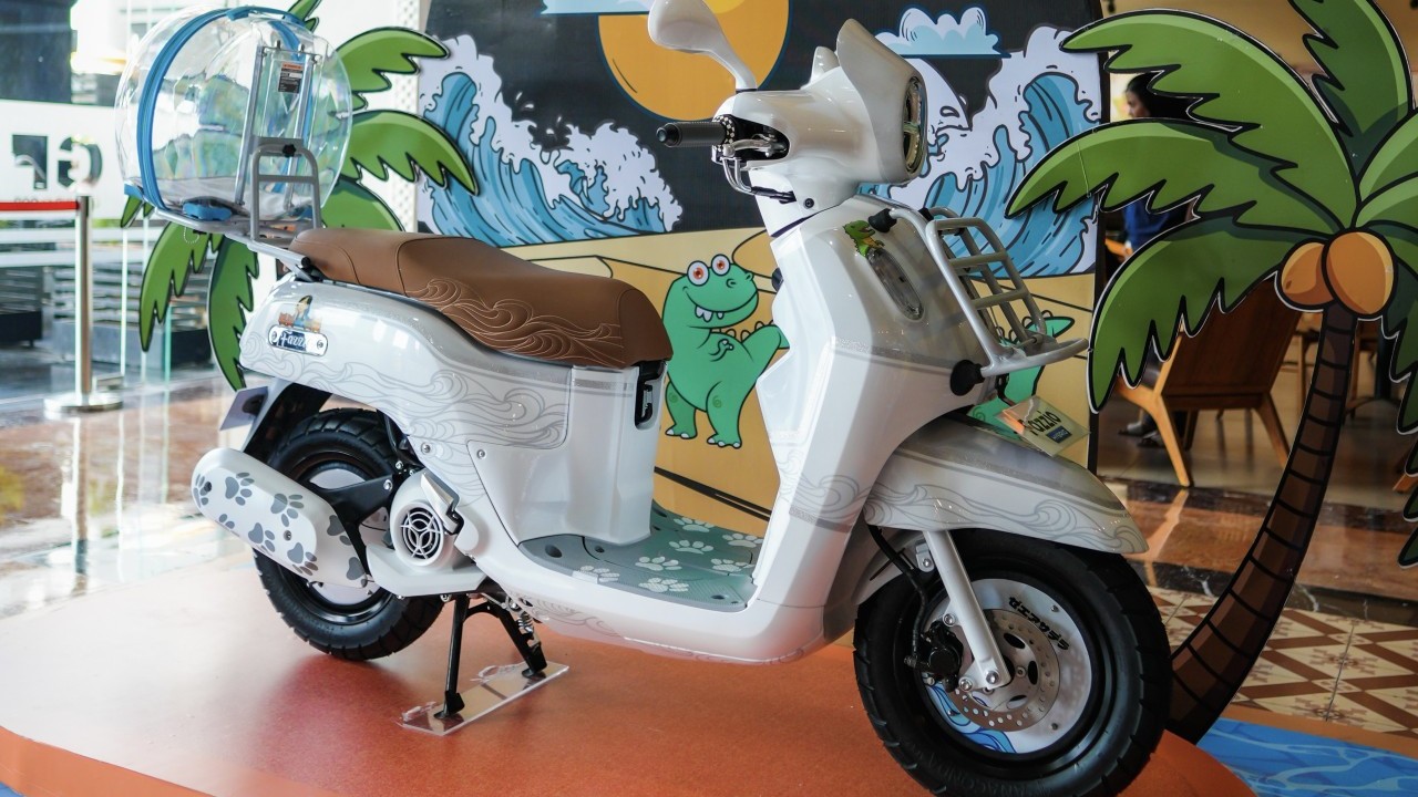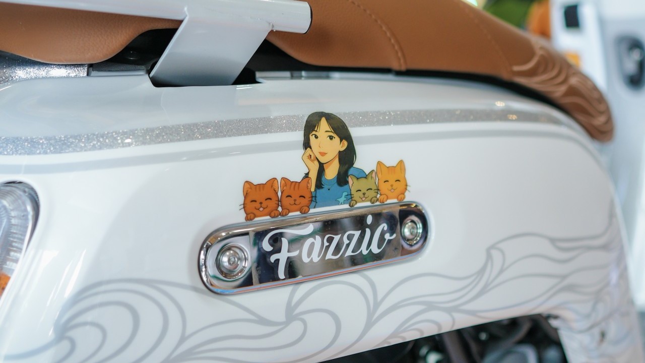 Di samping itu, terlihat juga gambar animasi Zee bersama empat kucingnya di atas list chrome di tengah body, yang semakin memperkuat karakter Zee pada motor tersebut.
