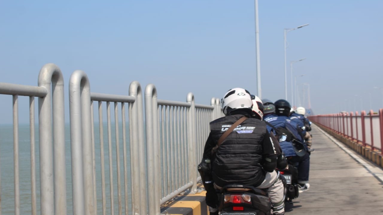 Para Peserta melewati jembatan Suramadu--Yamaha