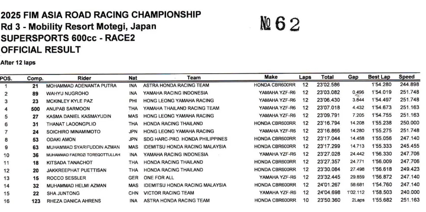 Hasil Race 2 ARRC SS600 Jepang 2025--ARRC