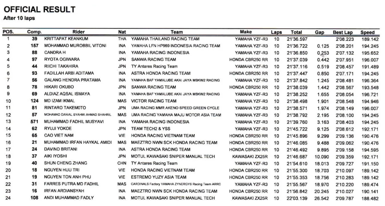 Hasil Race 2 ARRC AP250 Jepang 2025--ARRC