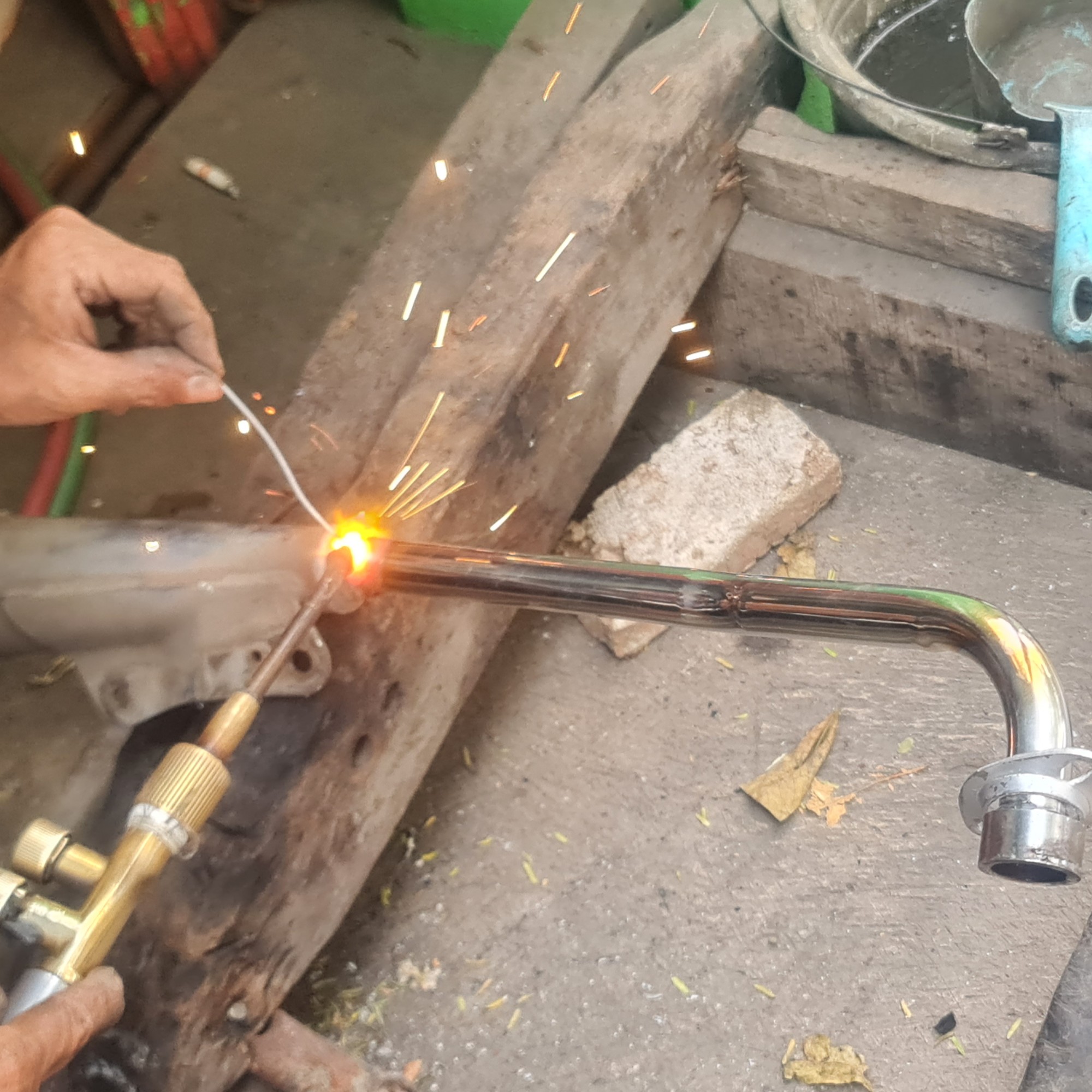 Proses pengelasan leher knalpot dengan bahan stainless--Rio