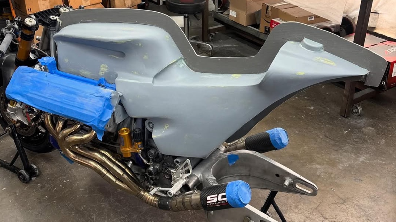 Efek visualnya jadi makin brutal, apalagi bodinya dibentuk pakai bahan polistirena, bikin tampilannya mirip motor Moto2 zaman dulu.