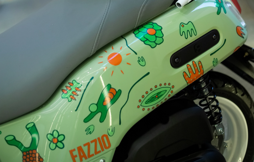 Menurutnya, Yamaha Fazzio tergolong mudah untuk dimodifikasi. Ia pun menempelkan berbagai stiker bertema mikroorganisme secara acak di seluruh bagian motor.