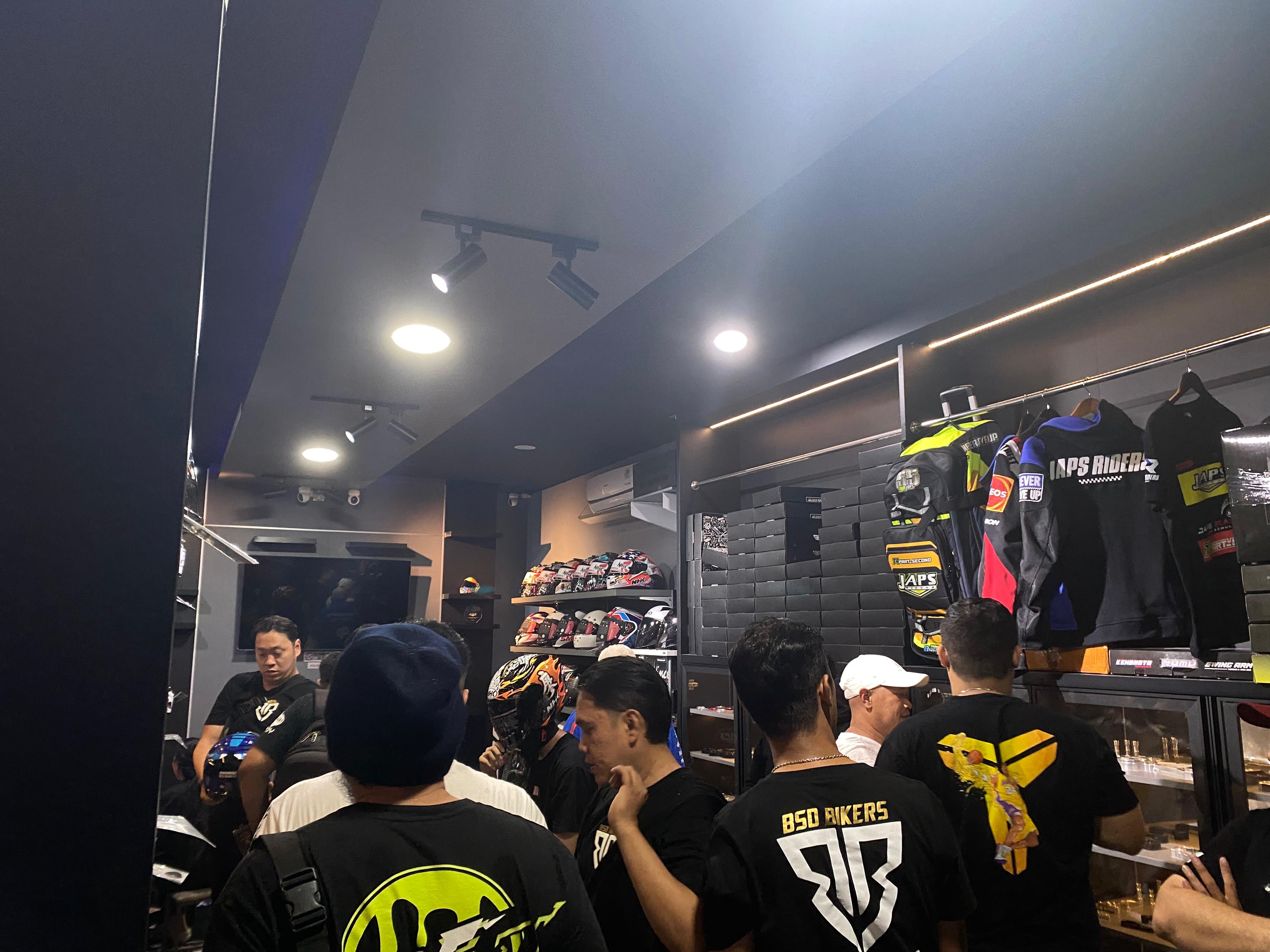 “Buat yang mau kopdar atau cari tempat ngopi bisa datang ke JAPS Café. Ada JAPS Racing juga yang menyediakan berbagai helm branded, jaket, hoodie, CNC Parts dan Car Simulator,” papar Iyo.
