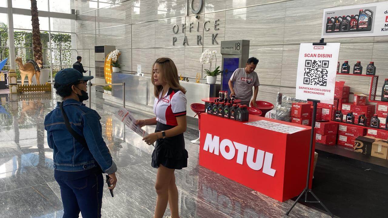 Lewat program ini, Motul Indonesia membuka booth khusus di kawasan perkantoran untuk memperkenalkan produk pelumas Motul dan IPONE secara langsung kepada para pekerja yang sehari-hari menggunakan kendaraan pribadi.