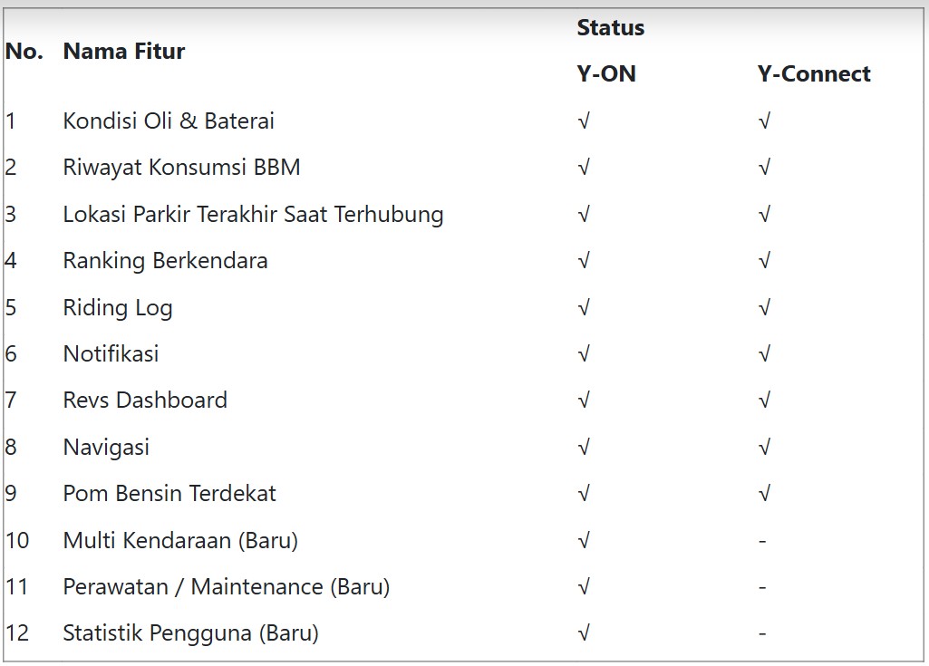 Pada tahap awal pengembangannya, Y-ON mengintegrasikan fitur dari Y-Connect dengan pembaruan tampilan yang lebih modern dan terstruktur.